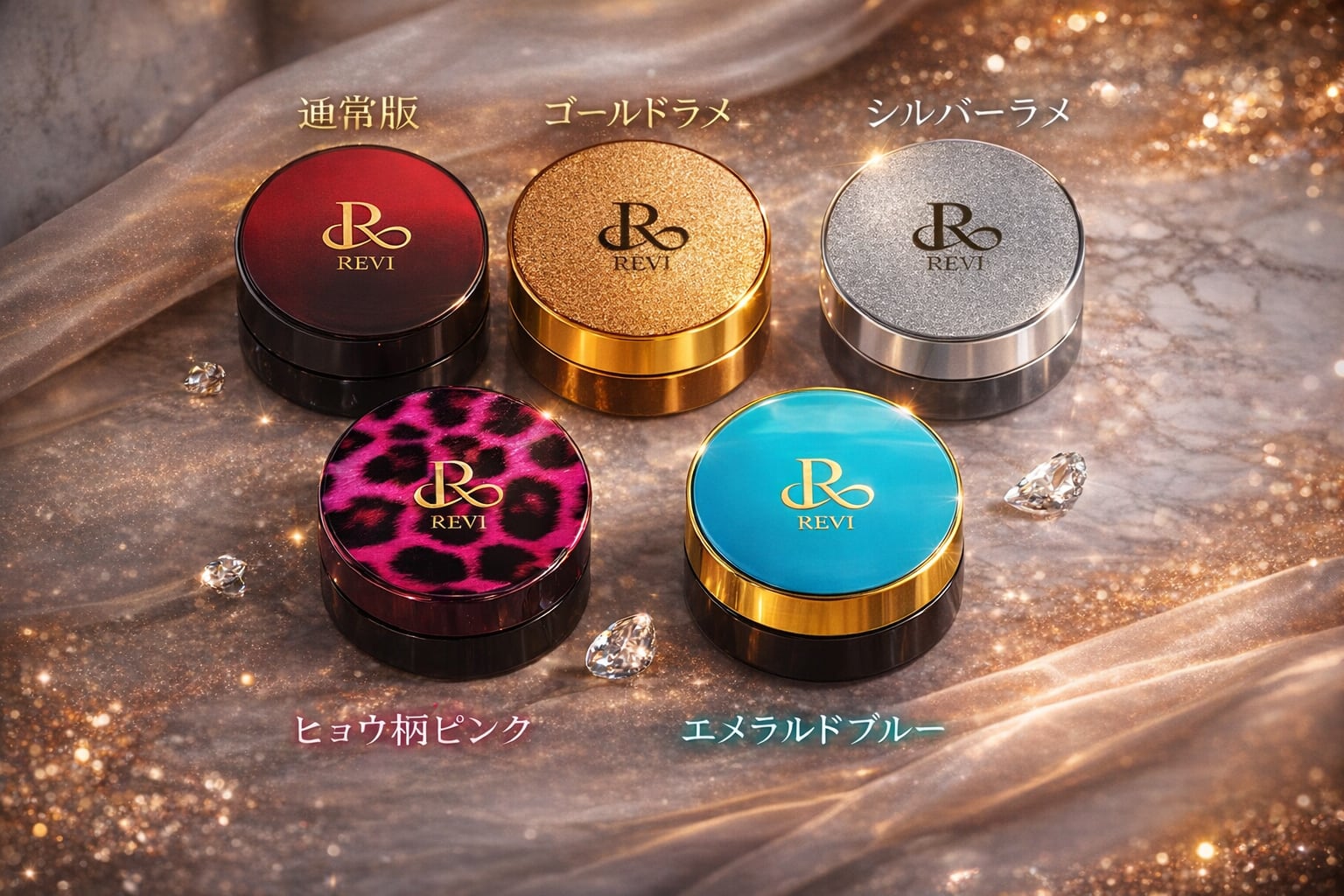 人気キャバ嬢でREVI愛用者の天乃えまさんとのコラボデザイン(在庫がなくなり次第終了)をはじめ、かわいいパッケージを取り揃えています!